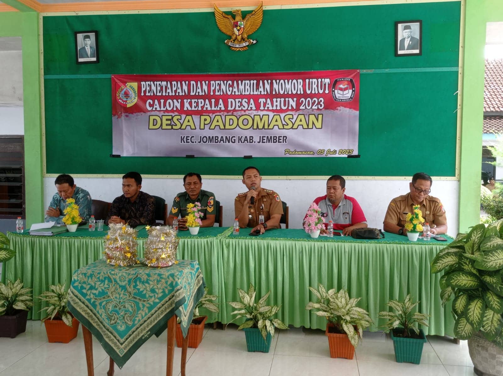 Dalam pelaksanaan kegiatan tersebut di hadiri Babinsa, bhabinkamtibmas, Satpolpp, BPD Desa Padomasan dan Muspika Kecamatan Jombang, selain itu juga hadir dari para calon Kepala Desa Padomasan dengan nomor urut yakni,