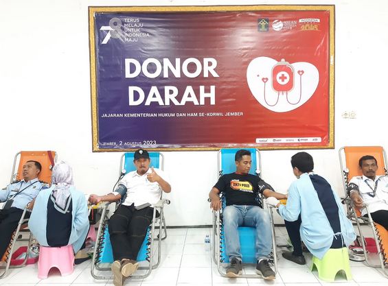 “Kegiatan sosial donor darah ini secara rutin digelar dalam rangkaian kegiatan baik Hari Bhakti Pemasyarakatan maupun Hari Kemenkumham dengan tujuan meningkatkan ketersediaan darah di PMI Kabupaten Jember dan menyelamatkan nyawa sesama,”kata Kepala Balai Pemasyarakatan Kelas II Jember, Basuki Raharjo.