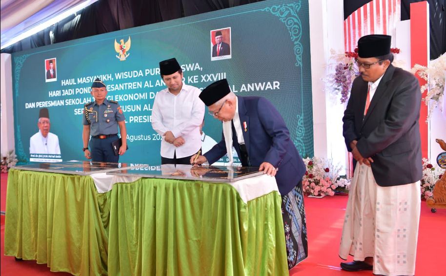 Bangkalan, SuaraPecari – Wakil Presiden RI, KH. Ma’ruf Amin, telah meresmikan pendirian Sekolah Tinggi Ekonomi dan Bisnis Islam (STEBI) di Pondok Pesantren Al-Anwar, yang terletak di Baton, Kecamatan Modung, Kabupaten Bangkalan, Jawa Timur, 31 Agustus 2023. Acara peresmian ini menjadi tonggak penting dalam pengembangan pendidikan Islam dan ekonomi syariah.