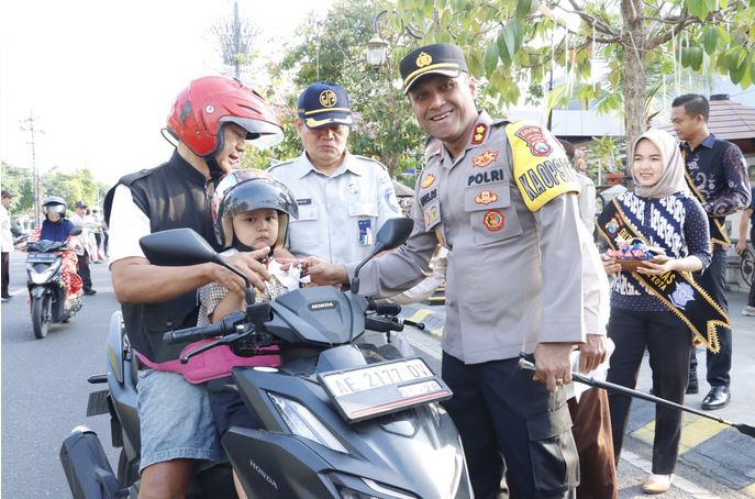 Edukasi di Operasi Zebra Semeru 2023, Polres Madiun Kota Berbagi Helm Gratis