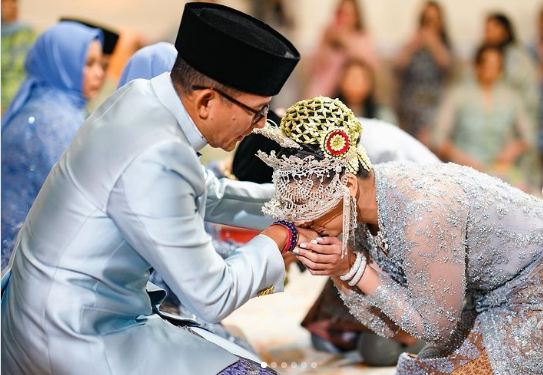 Sandiaga Uno melanjutkan, “Ananda Panji Bagas Dwiprakoso bin Haris Widodo, saya nikahkan dan saya kawinkan ananda dengan anak kandung saya Anneesha Atheera Uno binti Sandiaga Salahuddin Uno kepada engkau dengan mas kawin logam mulia seberat 75 gram dan uang sebesar USD 2.309 dibayar tunai.”