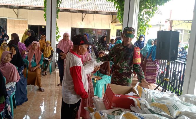 Babinsa Koramil 0825-20 Songgon Dampingi Penyaluran Bantuan Pangan Cadangan Beras Pemerintah (CBP)