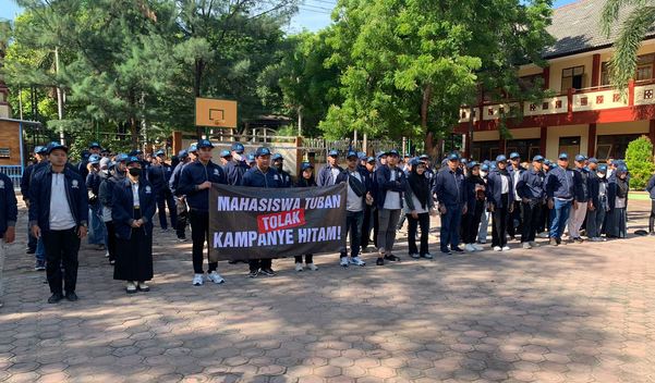 Suara Pecari, Tuban – Sejumlah mahasiswa Universitas Sunan Bonang (USB) Kabupaten Tuban mengekspresikan sikap penolakan terhadap kampanye hitam yang dapat mengancam situasi keamanan dan ketertiban menjelang pemungutan suara Pemilu 2024. Dalam aksi damai yang digelar di halaman kampus, puluhan mahasiswa membentangkan poster dengan tulisan tegas, “Mahasiswa Tuban Tolak Kampanye Hitam.”