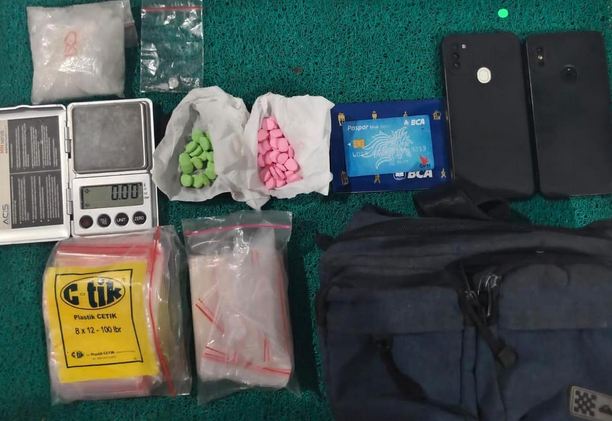 Selain menangkap EYJ, polisi juga berhasil menyita sejumlah barang bukti, termasuk 1 kantong plastik berisikan kristal sabu dan 27 butir tablet warna pink dengan logo Hulk. Barang bukti lainnya meliputi ekstasi dengan berat total 12,303 gram, tablet warna hijau logo Hulk seberat 7,485 gram, satu timbangan elektrik, 2 bendel klip plastik, satu tas warna hitam, dan satu handphone.