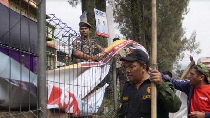 Penertiban dilakukan terhadap banyak spanduk dan poster bergambar calon legislatif dari berbagai tingkatan pemilihan yang terpasang di median jalan. APK yang terpasang di pohon dan tiang listrik juga dicopot oleh tim gabungan, melibatkan Satpol-PP Kabupaten Karo dan instansi lainnya.