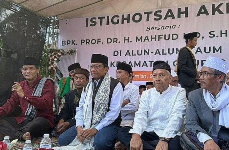 Suara Pecari, Sukabumi – Calon Wakil Presiden nomor urut 3, Mahfud MD, memberikan peringatan kepada masyarakat untuk tidak terpengaruh oleh hasil survei dalam pemilihan presiden mendatang. Pernyataan ini disampaikannya setelah menghadiri acara istighosah bersama masyarakat di Alun-alun Cicurug, Kecamatan Cicurug, Kabupaten Sukabumi, Jawa Barat, pada Jumat (9/2/2024).