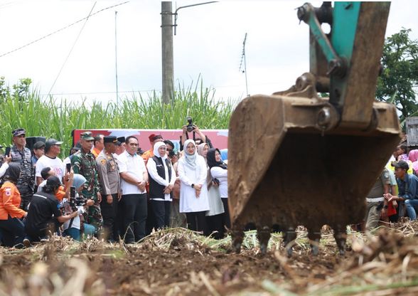 Gubernur Jawa Timur, Khofifah Indah Parawansa, bersama Bupati Banyuwangi, Ipuk Fiestiandani, meresmikan dimulainya pembangunan hunian tersebut di lokasi Dusun Krajan, Desa Kalibaru Wetan, Kecamatan Kalibaru pada Minggu (11/2/2024). Proses pembangunan hunian tersebut diharapkan berjalan lancar dan dapat diselesaikan sesuai target.