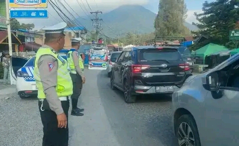 Polres Tanah Karo Tak Kenal Lelah Atur Arus Lintas di Kota Wisata Berastagi