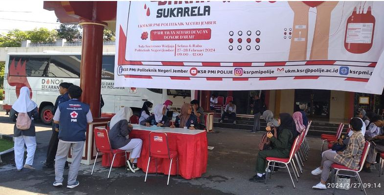 Suara Pecari, Jember – Kesatuan Relawan Palang Merah Indonesia (KSR PMI) Unit Politeknik Negeri Jember (Polije) menunjukkan dedikasi tinggi dan pengabdian kepada masyarakat dengan sukses menyelenggarakan kegiatan donor darah sukarela selama dua hari berturut-turut, pada tanggal 27 dan 28 Februari 2024. Sebanyak 35 anggota dan pengurus KSR PMI Unit Polije terlibat aktif dalam kegiatan ini.