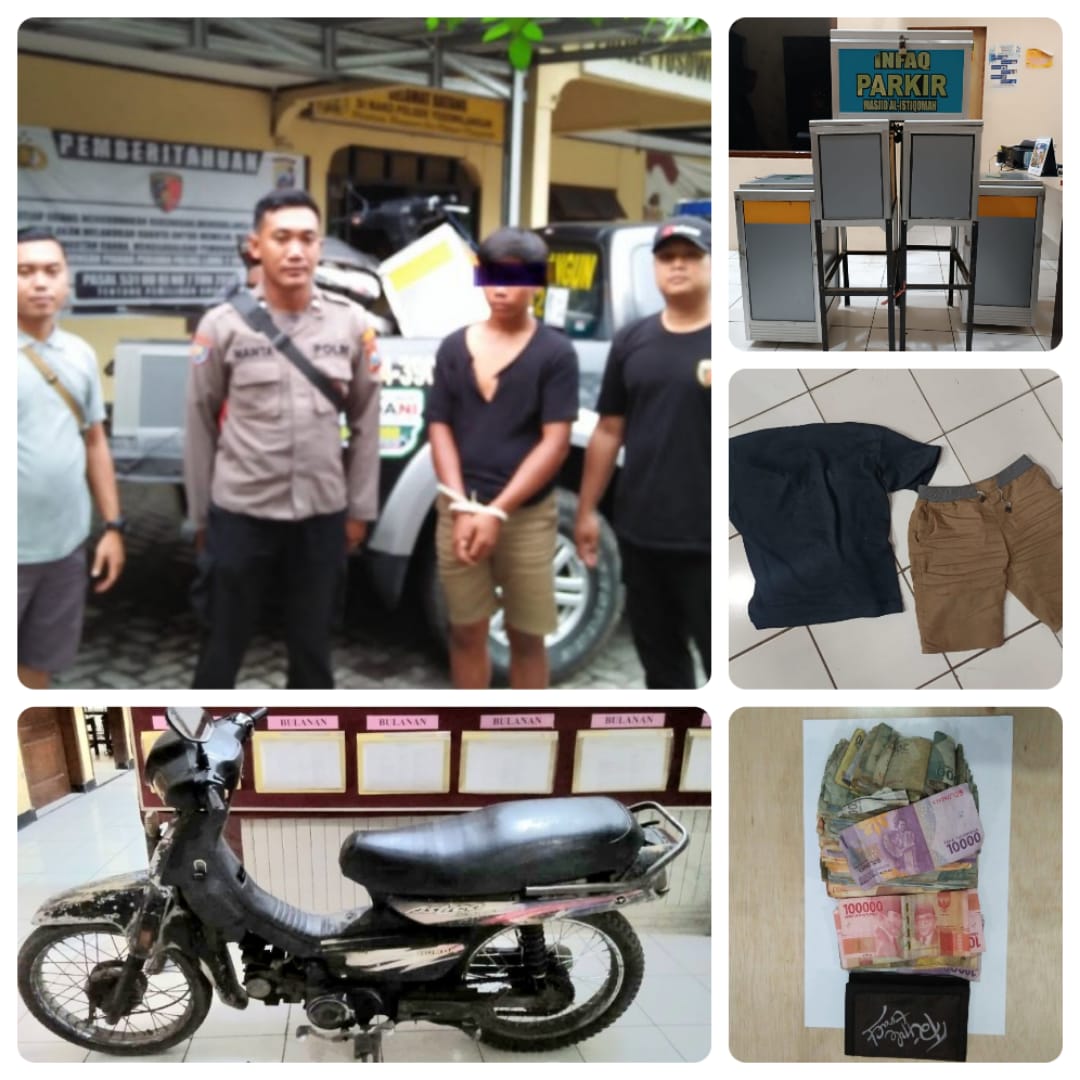 “Saat keluar dari masjid pelaku dihadang oleh dua orang takmir masjid yang datang dari arah selatan menggunakan sepeda motor, namun pelaku memberontak dan berhasil melarikan diri dengan meninggalkan uang hasil curian dan sepeda motornya yang diparkir di halaman masjid,” ungkap Ipda Sugiarto.