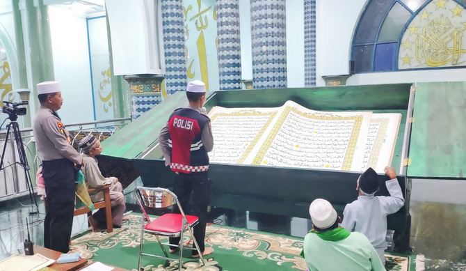 Polisi di Banyuwangi Melakukan Tadarus Al-Quran di Masjid Agung Baiturrahman