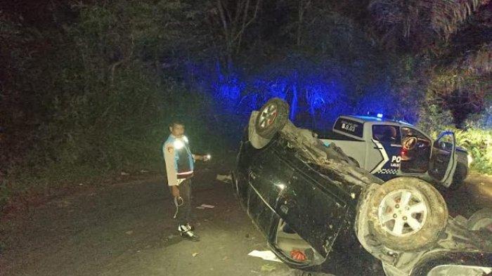 Sambung kasat, mobil saat itu mengalami hilang kendali hingga terjun ke jurang dan berbuntut terbalik di ruas jalan yang membelah bukit tersebut.