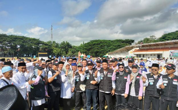 Ribuan Jamaah Haji mengikuti Manasik Haji Di Lapangan GOR Tawangalun