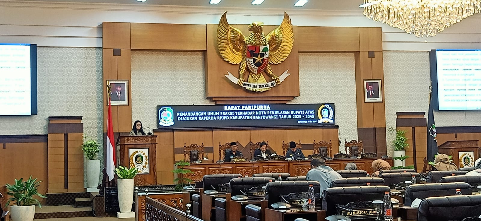 Banyuwangi – Dewan Perwakilan Rakyat Daerah (DPRD) Kabupaten Banyuwangi mengadakan rapat paripurna pada Selasa 4 Juli 2024 untuk mendengarkan pandangan umum fraksi-fraksi terhadap nota penjelasan Bupati Banyuwangi mengenai Rancangan Peraturan Daerah (Raperda) tentang Rencana Pembangunan Jangka Panjang Daerah (RPJPD) 2025-2045.