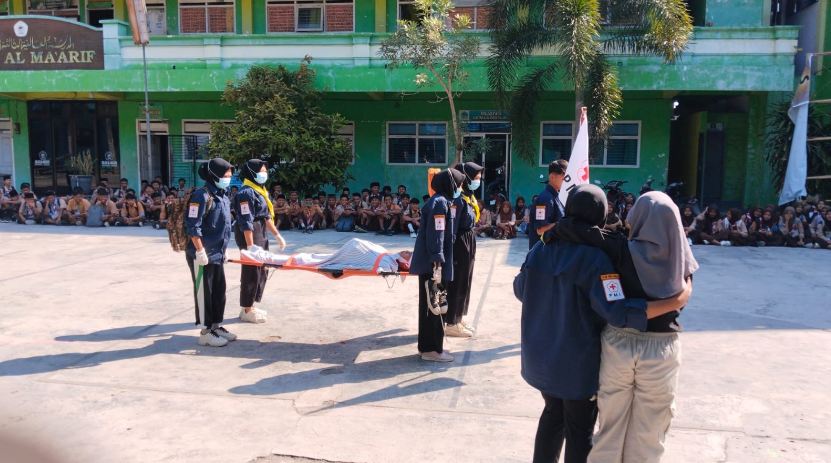 Jember – Sebagai bagian dari kegiatan Masa Pengenalan Lingkungan Sekolah (MPLS) tahun 2024, PMR SMK 01 Diponegoro Wuluhan menggelar simulasi pertolongan pertama di halaman sekolah, Rabu, 17 Juli 2024. Acara ini dihadiri oleh ratusan siswa baru untuk memperkenalkan pentingnya keterampilan dasar dalam penanganan medis saat kecelakaan atau keadaan darurat.