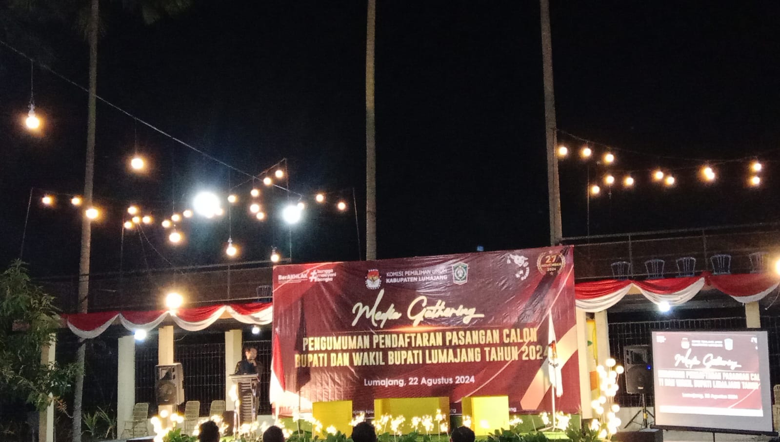 Lumajang – Komisi Pemilihan Umum (KPU) kabupaten Lumajang menyelenggarakan acara “Media Gathering” dalam rangka pengumuman pendaftaran pasangan calon bupati dan wakil bupati untuk Pemilihan Kepala Daerah (Pilkada) Kabupaten Lumajang tahun 2024. Acara tersebut berlangsung pada malam ini, Kamis (22/08/2024) di Warung Pondok Asri, Sukodono, Lumajang.