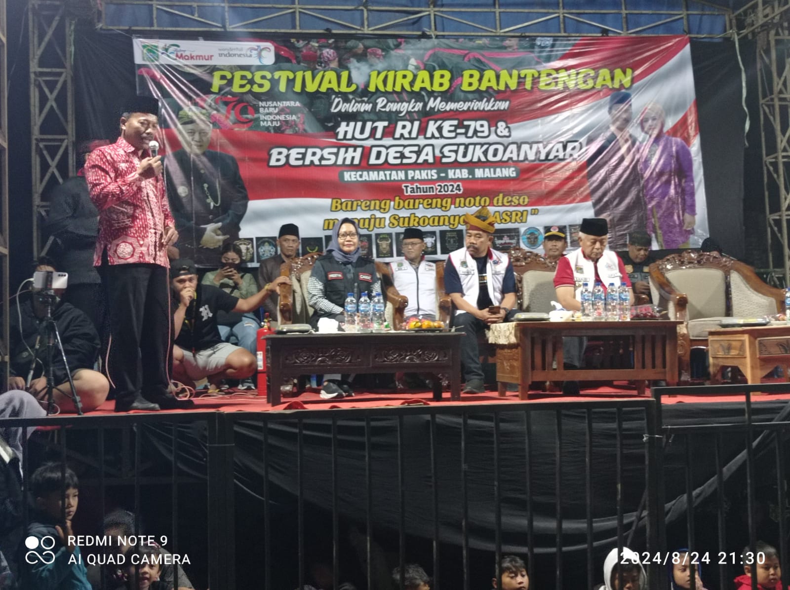 Disela – sela acara bersih Desa ini Kepala Desa Sukoanyar Abah Usman sapaan karipnya menyampaikan Dalam rangka memperingati HUT RI yang ke 79 dan Bersih Desa Sukoanyar, Alhamdulillah pada kesempatan malam ini kita masih diberikan kesehatan, nikmat dan kuat. Apa lagi di depan kita ada pimpinan kita Bupati Malang Hj. Sanusi selama ini telah membangun kabupaten malang ini lebih baik.