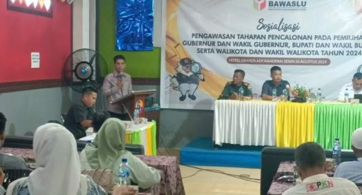 Labura, suarapecari.com – Badan Pengawas Pemilu (Bawaslu) Labuhanbatu Utara menggelar sosialisasi Pengawasan Tahapan di Pencalonan pada Pemilihan Gubernur/Wakil Gubernur, Bupati/Wakil Bupati serta Walikota/Wakil Walikota Tahun 2024 di Aula Hotel Grands Labura Aek Kanopan, Senin (26/8/2024).