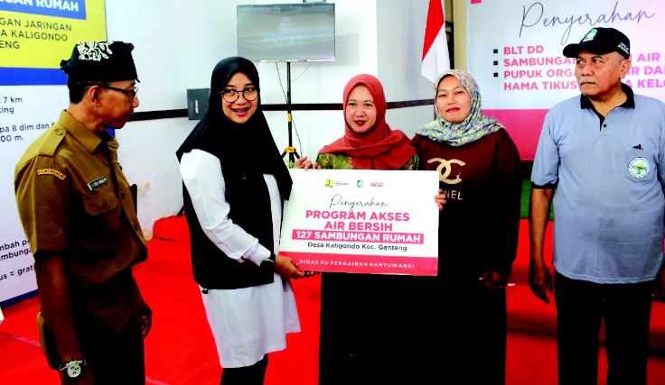 Banyuwangi – Pemerintah Kabupaten Banyuwangi, melalui Dinas PU Pengairan, menyerahkan bantuan program air bersih berupa jaringan pipanisasi untuk 127 sambungan rumah (SR) di Desa Kaligondo, Kecamatan Genteng, pada Selasa, 3 September 2024. Bantuan ini merupakan bagian dari proyek APBN dengan anggaran sebesar Rp567 juta, yang bertujuan untuk meningkatkan akses air bersih di wilayah tersebut.