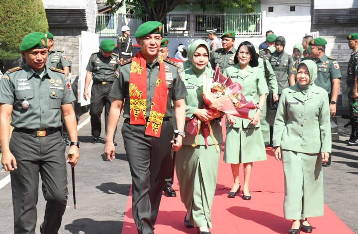 Banyuwangi – Panglima Kodam (Pangdam) V/Brawijaya, Mayor Jenderal TNI Rudy Saladin, M.A., melakukan kunjungan kerja ke Markas Kodim 0825 Banyuwangi pada Senin (9/9). Kunjungan ini disambut hangat oleh jajaran Kodim 0825 dan Forkopimda Banyuwangi. Kedatangan Pangdam beserta rombongan pukul 08.47 WIB turut dihadiri oleh pejabat utama Kodam V/Brawijaya dan Ketua Persit Kartika Chandra Kirana PD V/Brawijaya, Ny. Chrisma Virawanti Rudy Saladin.