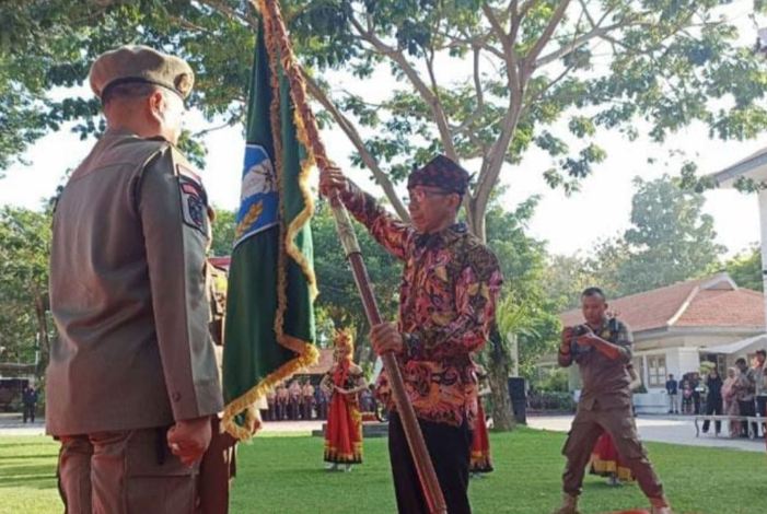 Prosesi penerimaan dipimpin oleh Pj Sekretaris Daerah Banyuwangi, Guntur Priambodo, yang melibatkan personel Satpol PP, Linmas, Pemadam Kebakaran, dan ratusan pelajar. Upacara dimulai dengan penyerahan pataka dari Kepala Satpol PP Kabupaten Situbondo, Sopan Effendi, kepada Pj Sekda Guntur, yang kemudian menyerahkannya kepada Kepala Satpol PP Kabupaten Banyuwangi, Wawan Yadmadi.
