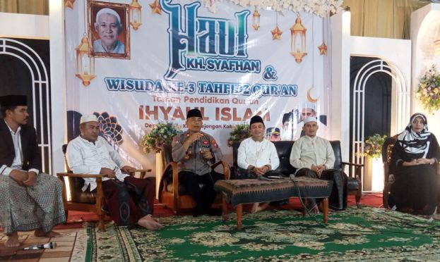 Kapolres Probolinggo, AKBP Wisnu Wardana, melalui Kasat Binmas Iptu Purwo Sudar Utomo, hadir dalam acara Haul KH. Syafhan dan Wisuda ke-3 Tahfidz Qur’an di TPQ Ihyaul Islam, Krejengan, 9 Oktober 2024. Dalam kesempatan tersebut, Iptu Purwo menyampaikan pesan-pesan keamanan dan ketertiban masyarakat (kamtibmas) untuk menjaga situasi tetap kondusif.