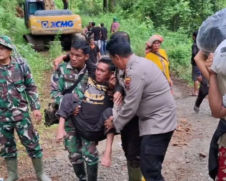 TNI dan Polri terlihat bekerjasama membersihkan material longsor yang menghalangi akses jalan umum serta mengevakuasi warga, terutama mereka yang sakit dan penyandang disabilitas, dari Desa Ketawaren ke lokasi pengungsian sementara di SD Negeri I Juhar, Kecamatan Juhar.