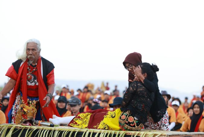 Dipimpin oleh penari Gandrung senior, prosesi wisuda ini ditandai dengan pemakaian Omprog—mahkota khas penari Gandrung—oleh Pj Sekretaris Daerah Banyuwangi, Guntur Priambodo. “Selamat kepada kalian semua. Saya bangga atas dedikasi kalian selama dua bulan latihan untuk menampilkan pertunjukan yang kita banggakan, Gandrung Sewu,” ujarnya.