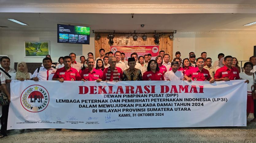 Deliserdang, — Ketua Umum Lembaga Peternakan dan Pemerhati Peternakan Indonesia (LP3I), Rependi Hutabalian, M.TH, mengajak seluruh anggota untuk menebarkan kedamaian dalam Pilkada yang akan digelar pada 27 November 2024. Dalam sambutannya pada kegiatan Deklarasi Damai di Rumah Makan Belut Garing, Rependi menekankan pentingnya sikap damai dan saling menghormati, terlepas dari siapa yang terpilih sebagai pemimpin.