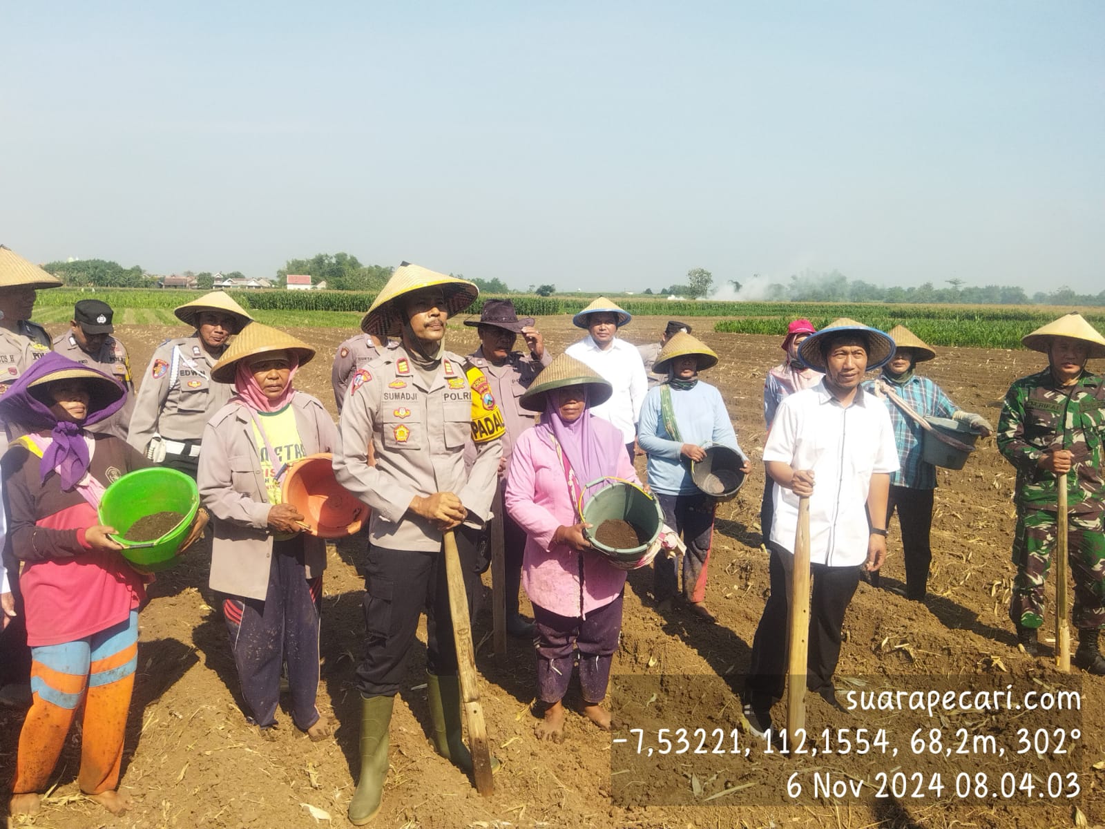 Penanaman jagung dipimpin oleh Kapolsek Bandar Kedungmulyo, AKP Sumadji S.H. bersama jajaran beserta kepala desa brangkal, pengurus pertanian Kecamatan bandar Kedungmulyo yang berlokasi di persawahan dusun Sidodadi, desa brangkal kecamatan bandar kedung mulyo Jombang pada rabo 6/11/2024.