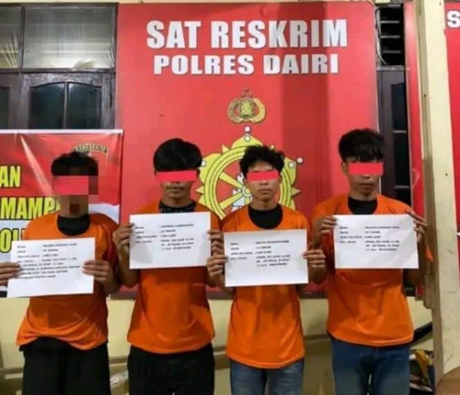 Kasat Reskrim Polres Dairi, AKP Meetson Sitepu mengatakan, identitas para tersangka yakni ALG (16) , APP (18), AL (22) dan ASLG (23) . Adapun tersangka ALG merupakan anak di bawah umur.