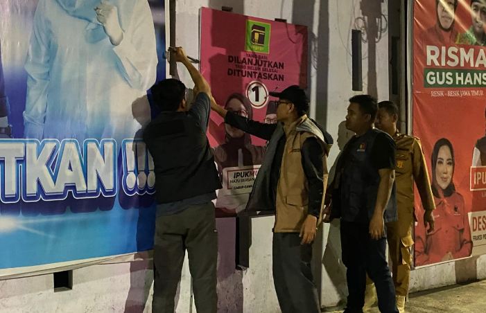 Tim Gabungan Bersihkan Alat Peraga Kampanye di Banyuwangi Saat Masa Tenang Pilkada 2024