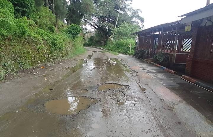 Berastagi, Suarapecari.com – Kondisi akses jalan menuju objek wisata Bukit Gundaling, Kecamatan Berastagi, Kabupaten Karo, Propinsi Sumatra Utara, berlubang lubang bila hujan turun tak ubahnya bagaikan Kolam ikan.