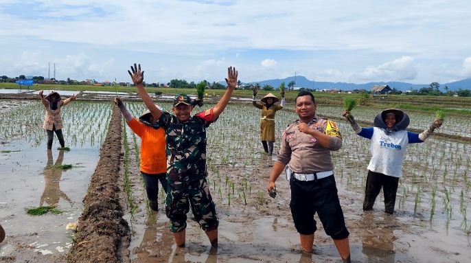 Pada Kamis (5/12), Aipda Ericofenando bersama Babinsa Koptu Wawan melakukan sosialisasi dan pembinaan kepada kelompok tani setempat. Tidak hanya berbicara, keduanya juga langsung terjun ke sawah dan berbaur dengan para petani untuk bercocok tanam padi, memberikan contoh nyata kepada warga tentang pentingnya berpartisipasi dalam ketahanan pangan lokal.