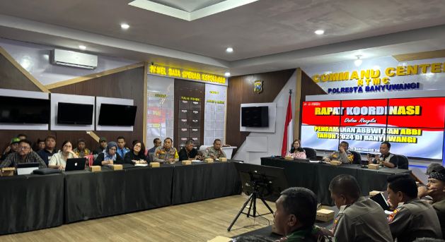 Banyuwangi, – Menjelang pelaksanaan kegiatan Aku Bangga Berwisata di Indonesia (ABBWI) dan Anugerah Bangga Buatan Indonesia (BBWI), Polresta Banyuwangi bersama instansi terkait menggelar rapat koordinasi di Command Center, Rabu (11/12/2024). Rapat ini bertujuan untuk mempersiapkan pengamanan acara yang akan digelar pada 13-14 Desember 2024 di Gesibu Taman Blambangan.