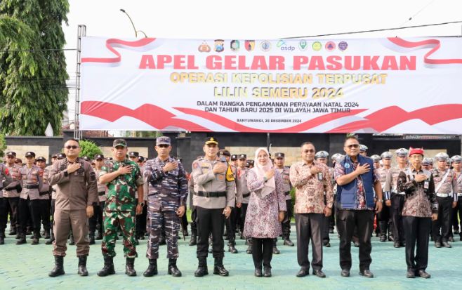 BANYUWANGI – Menjelang perayaan Natal 2024 dan Tahun Baru 2025 (Nataru), Polresta Banyuwangi menggelar apel kesiapan pengamanan dalam rangka Operasi Lilin Semeru 2024. Apel tersebut dilaksanakan pada Jumat, 20 Desember 2024, di halaman Mapolresta Banyuwangi, dan dihadiri oleh berbagai instansi terkait, termasuk Polsek jajaran, TNI, Dishub, Sat Pol PP, Senkom, serta dinas lainnya.