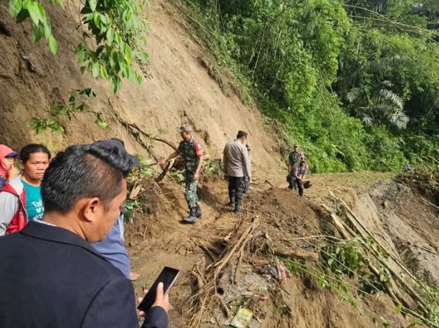 TNI, Polri dan Masyarakat Bekerjasama Bersihkan Tanah Longsor di Barusjahe