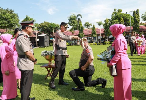 68 Anggota Polres Jombang Naik Pangkat, Tradisi Siraman Kembang Warnai Upacara Kenaikan Pangkat
