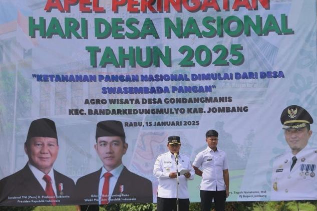 Apel dipimpin langsung oleh Pj Bupati Jombang, Dr. Drs. Teguh Narutomo, M.M., dan dihadiri oleh kepala OPD terkait lingkup Pemkab Jombang, camat, serta kepala desa beserta perangkat desa se-Kabupaten Jombang. Peringatan ini menandai pertama kalinya Hari Desa Nasional 2025 dirayakan secara resmi, setelah ditetapkan melalui Keputusan Presiden Republik Indonesia Nomor 23 Tahun 2024, yang menetapkan tanggal 15 Januari sebagai Hari Desa Nasional.