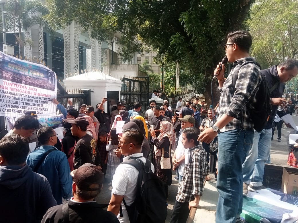 MEDAN – Puluhan orang tua calon siswa TNI AD yang menjadi korban penipuan oleh oknum bernama Nina Wati, menggelar aksi demonstrasi di depan kantor DPRD Provinsi Sumatera Utara (Sumut), pada Selasa (11/2/2025). Mereka menuntut agar pelaku penipuan dan penggelapan senilai puluhan miliar rupiah tersebut segera ditangkap dan dihukum sesuai dengan undang-undang yang berlaku.