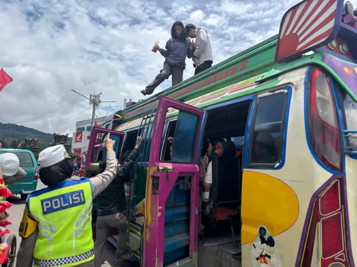 Pada Sabtu (5/4/2025) sekitar pukul 11.00 WIB, Kasat Lantas Polres Tanah Karo AKP Rabiah Hasibuan, S.H. menghentikan sebuah angkutan umum yang membawa penumpang di atas atap kendaraan, tepatnya di kawasan Tugu Juang, Berastagi.