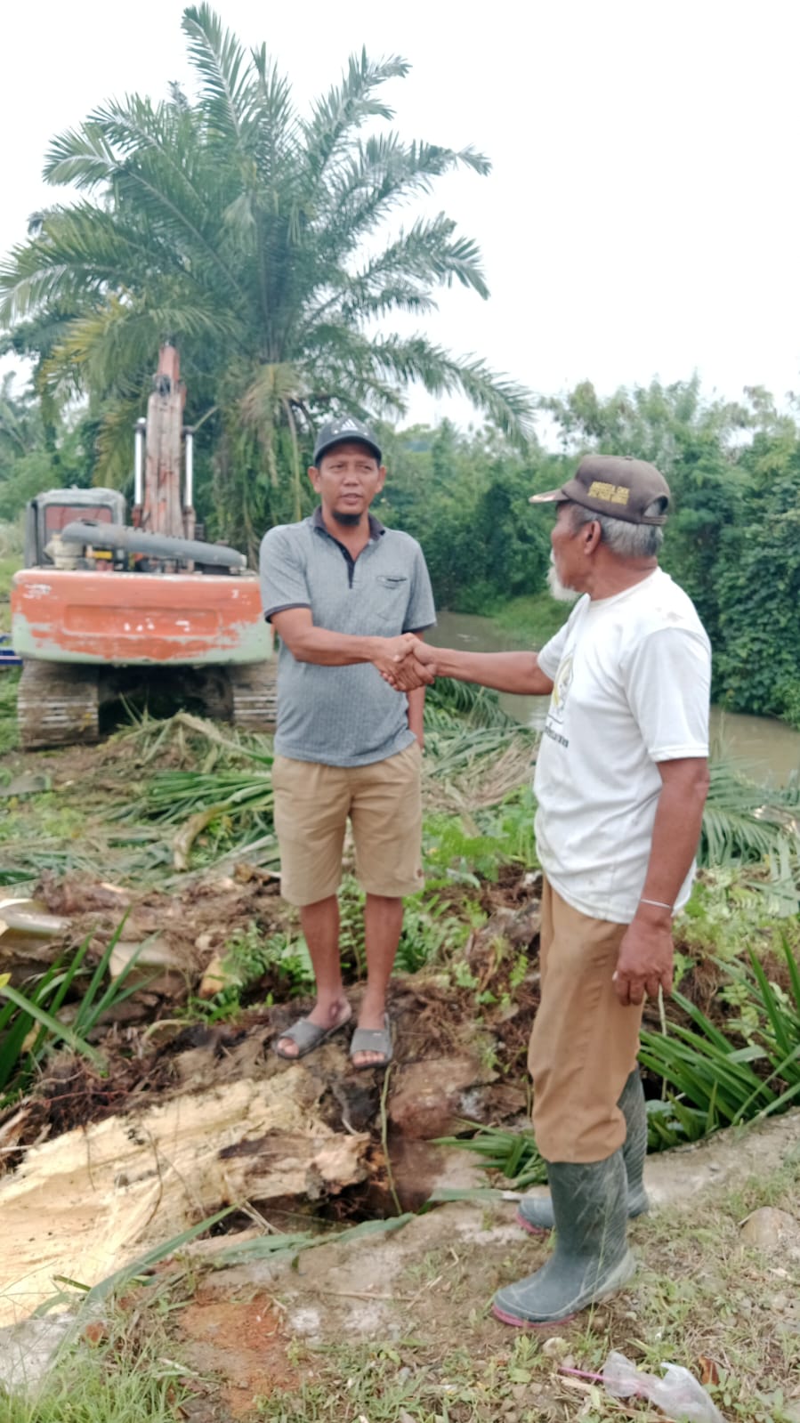 Puluhan warga turut ambil bagian dalam kerja bakti membersihkan dan memperluas lahan pemakaman. Proses ini terbantu signifikan dengan kehadiran satu unit alat berat ekskavator milik Edy Syahputra, yang dipinjamkan secara cuma-cuma untuk mempercepat pengerjaan.