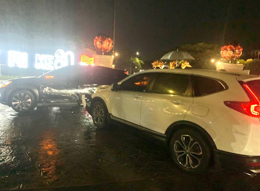 Akibat tabrakan itu, bumper depan Honda CRV ringsek dan airbag mengembang. Sementara, body samping mobil BYD mengalami penyok dan goresan panjang.