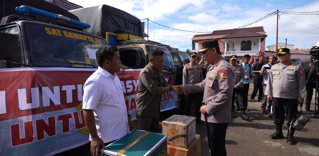 Sebagai wujud nyata kehadiran negara, Kapolri secara simbolis menyerahkan delapan truk bantuan bertajuk Polri untuk Masyarakat kepada Bupati Tapanuli Tengah, Masinton Pasaribu. Bantuan berisi bahan makanan, pakaian, dan kebutuhan sehari-hari itu langsung disalurkan ke posko pengungsian warga terdampak di GOR Pandan, Kabupaten Tapanuli Tengah.