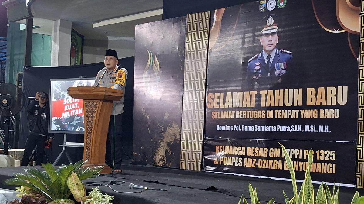 Dalam sambutannya, Kombes Pol. Dr. Rama Samtama Putra menyampaikan rasa syukur atas kondisi Banyuwangi yang dinilainya semakin kondusif. Ia juga menyoroti perkembangan sektor pariwisata yang berdampak langsung terhadap pertumbuhan ekonomi dan kesejahteraan masyarakat.