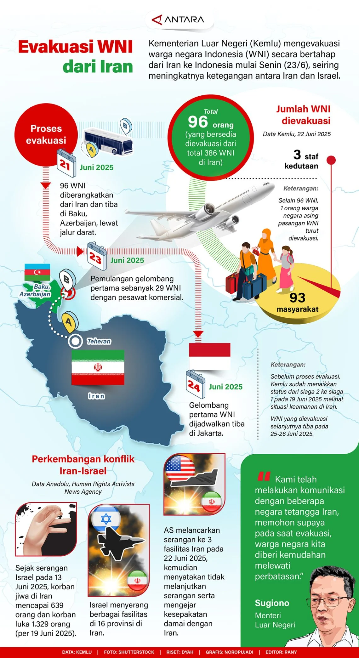 A senior official of the Indonesian Ministry of Foreign Affairs, speaking on condition of anonymity, said the government is in constant contact with Tehran’s officials. “We are prepared to evacuate if the security environment deteriorates sharply,” he added.