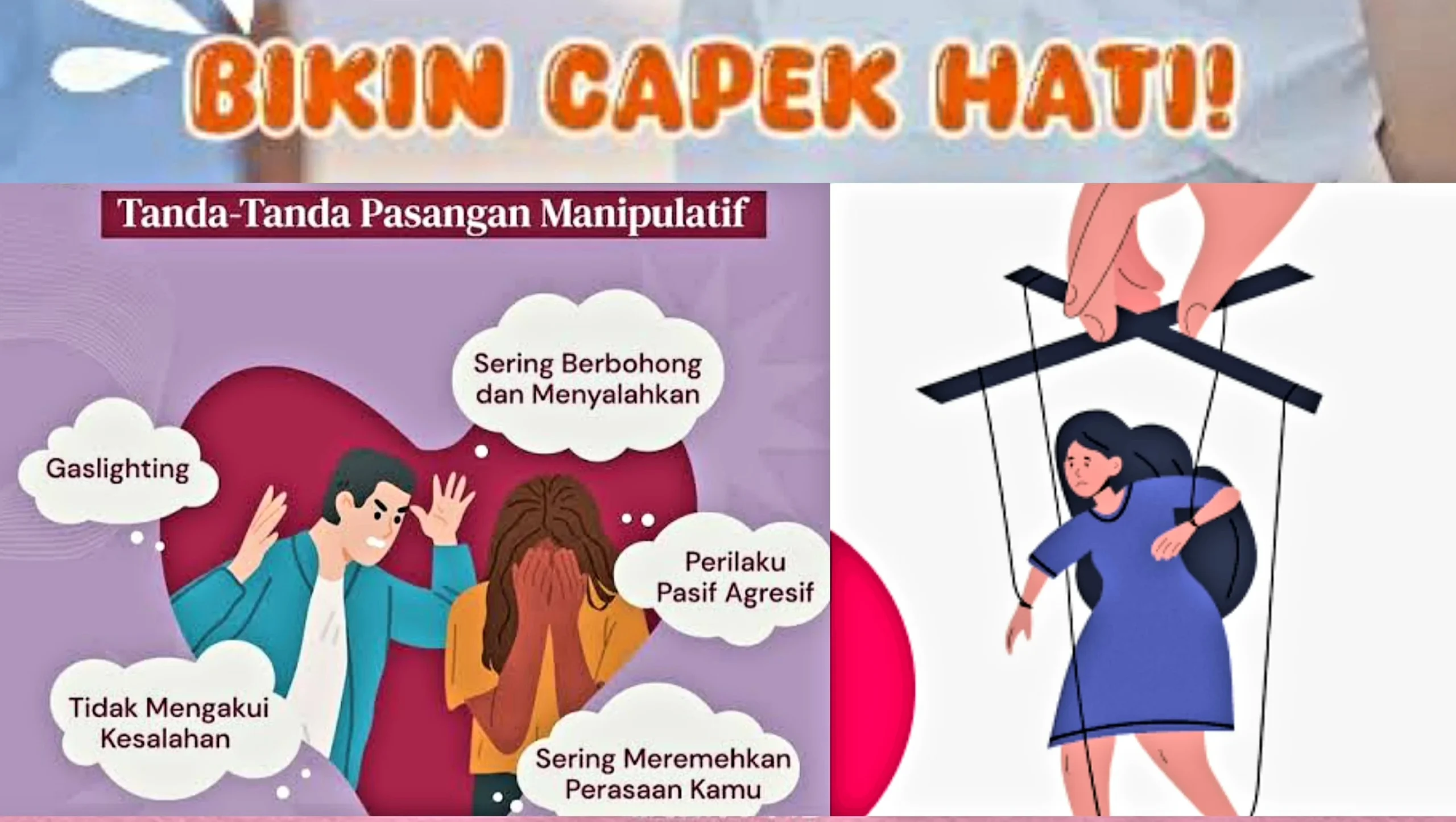 Kalimat kedua, “Kalau kamu tidak setuju, berarti kamu tidak mencintaiku,” menyamarkan kontrol dengan kedekatan emosional.