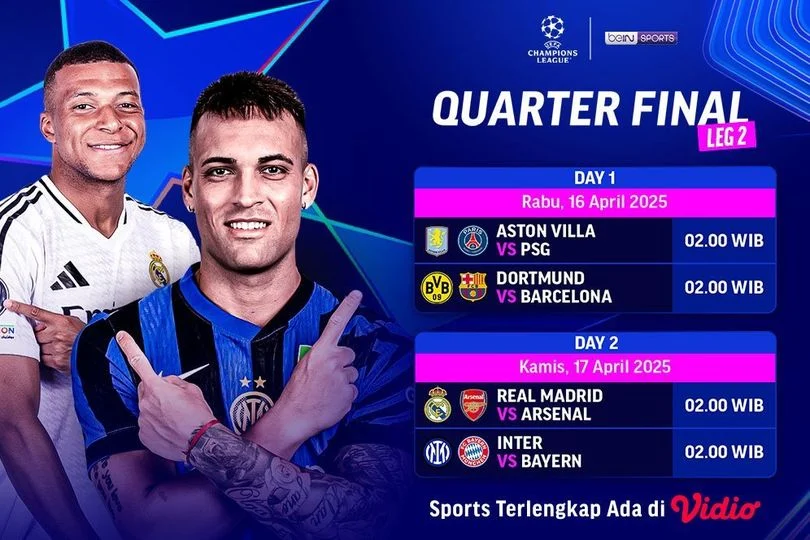 Jadwal Leg Kedua Perempat Final Liga Champions 2025/2026 Siap Tayang di SCTV dan Vidio
