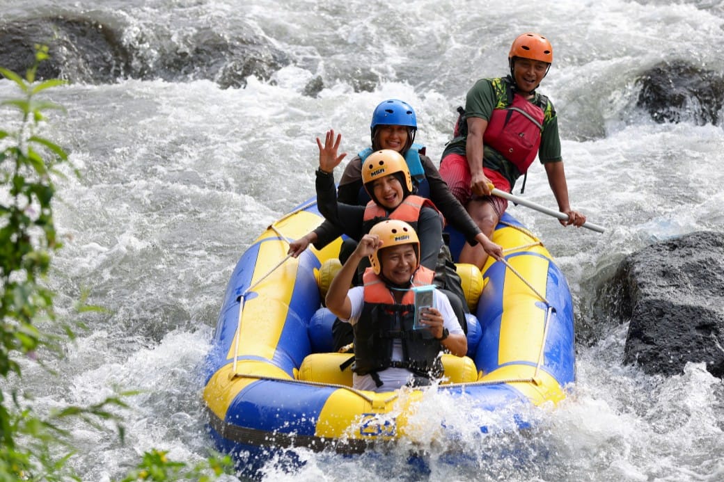 Salah satu kegiatan yang menarik perhatian adalah saat Ipuk menjajal rafting di Sungai Badeng pada Jumat pagi (20/6/2025). Dengan penuh semangat, ia menelusuri derasnya aliran sungai sambil menikmati keindahan alam sekitar.