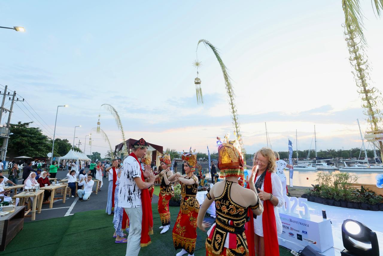 Para pelaut dunia disambut meriah oleh Bupati Banyuwangi Ipuk Fiestiandani bersama masyarakat dalam Welcoming Ceremony Sail to Indonesia 2025, yang digelar dengan nuansa budaya lokal. Tarian Gandrung, simbol kehormatan khas Banyuwangi, turut memeriahkan penyambutan.